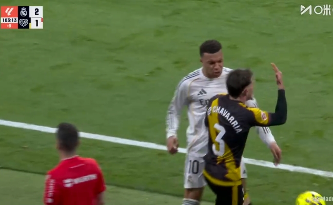 罗德里戈被推倒后,姆巴佩迅速上前为队友出头,与查瓦利亚对峙。