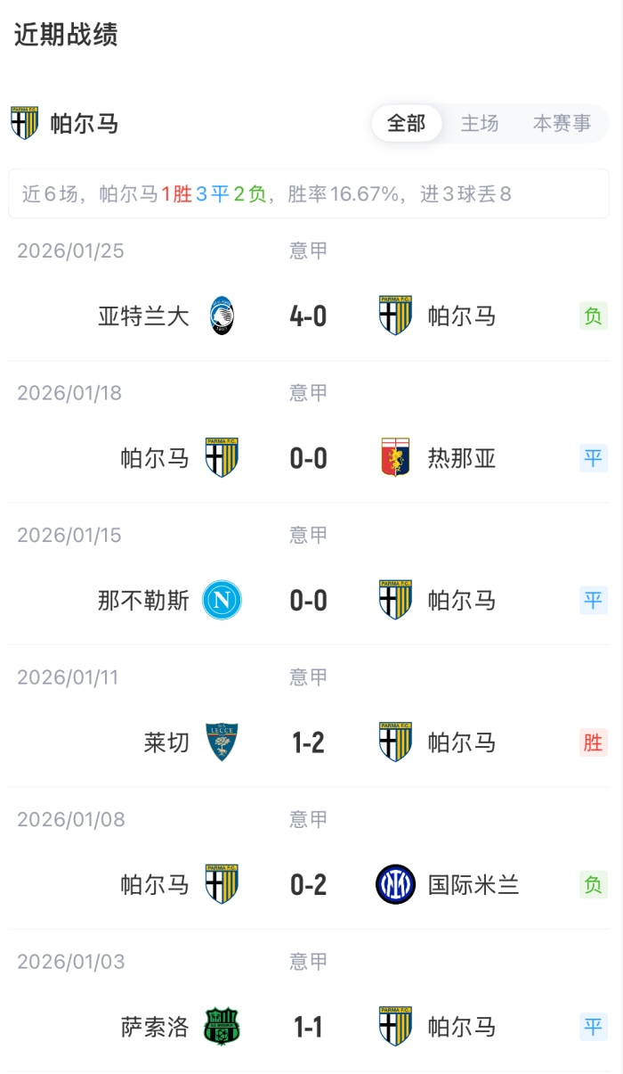 2月2日讯 意甲第23轮,帕尔马主场迎战尤文比赛即将打响。赛前首发出炉。