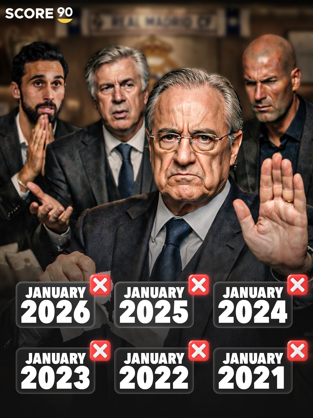 弗洛伦蒂诺在2000-2006年及2009-2026年担任皇马主席。在这执掌的23年间,他仅在冬窗签下雷尼尔、卜拉欣·迪亚斯、卢卡斯·席尔瓦、迭戈·洛佩斯、阿德巴约和格拉维森这6名球员。