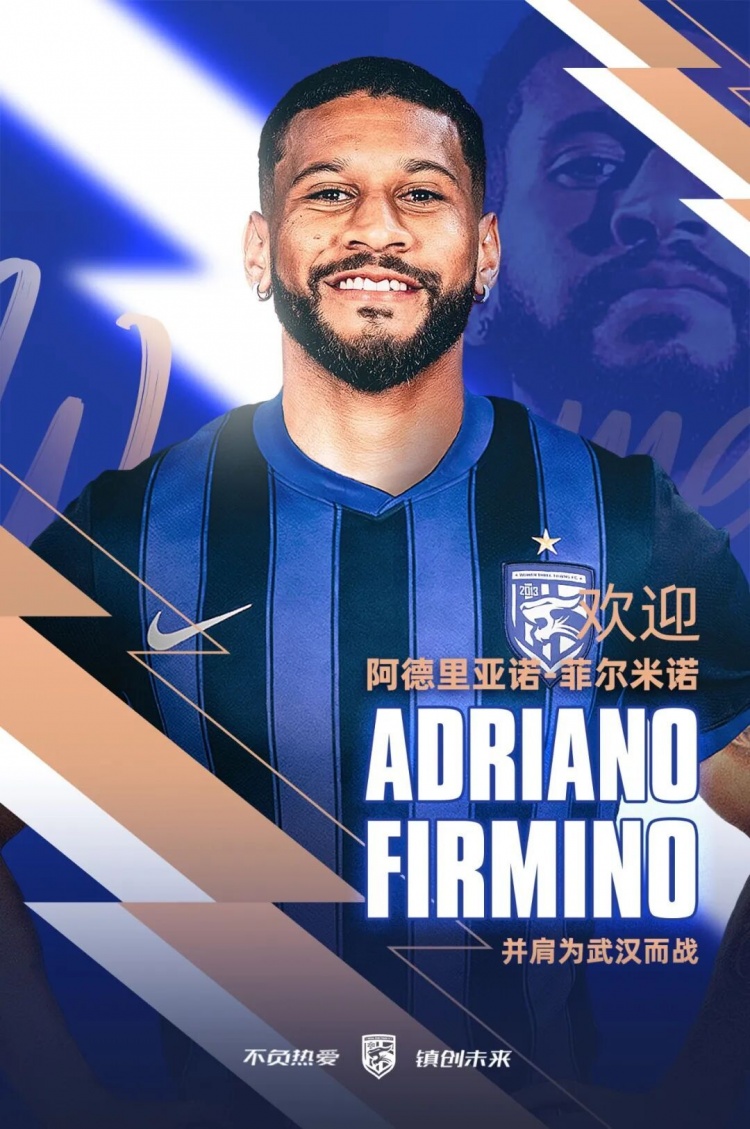 欢迎阿德里亚诺-菲尔米诺加入三镇大家庭,期待他快速融入球队,与队友们一同迎接新的挑战。