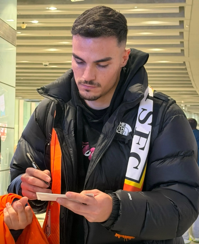 只待官宣!佩德罗·阿尔瓦罗抵达机场,披泰山围巾为球迷签名!