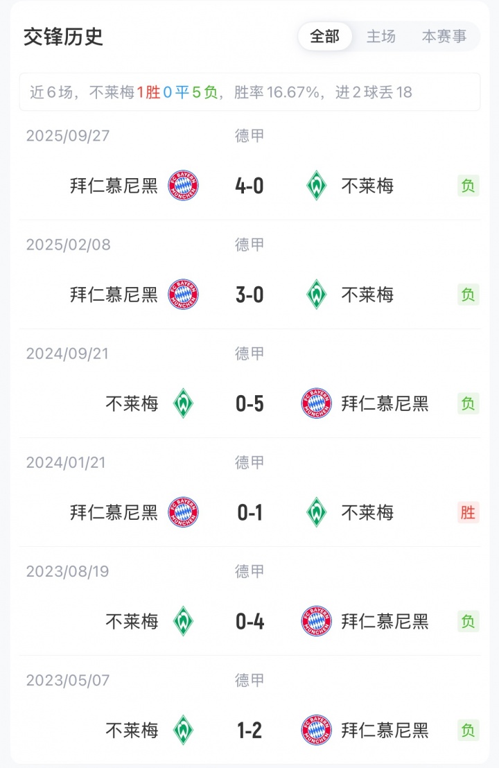 目前拜仁21轮积54分领跑德甲积分榜,领先身后先赛的多特3分;不莱梅19分排名第16,正为保级奋战。两队赛季首回合交锋中,拜仁主场4-0完胜。