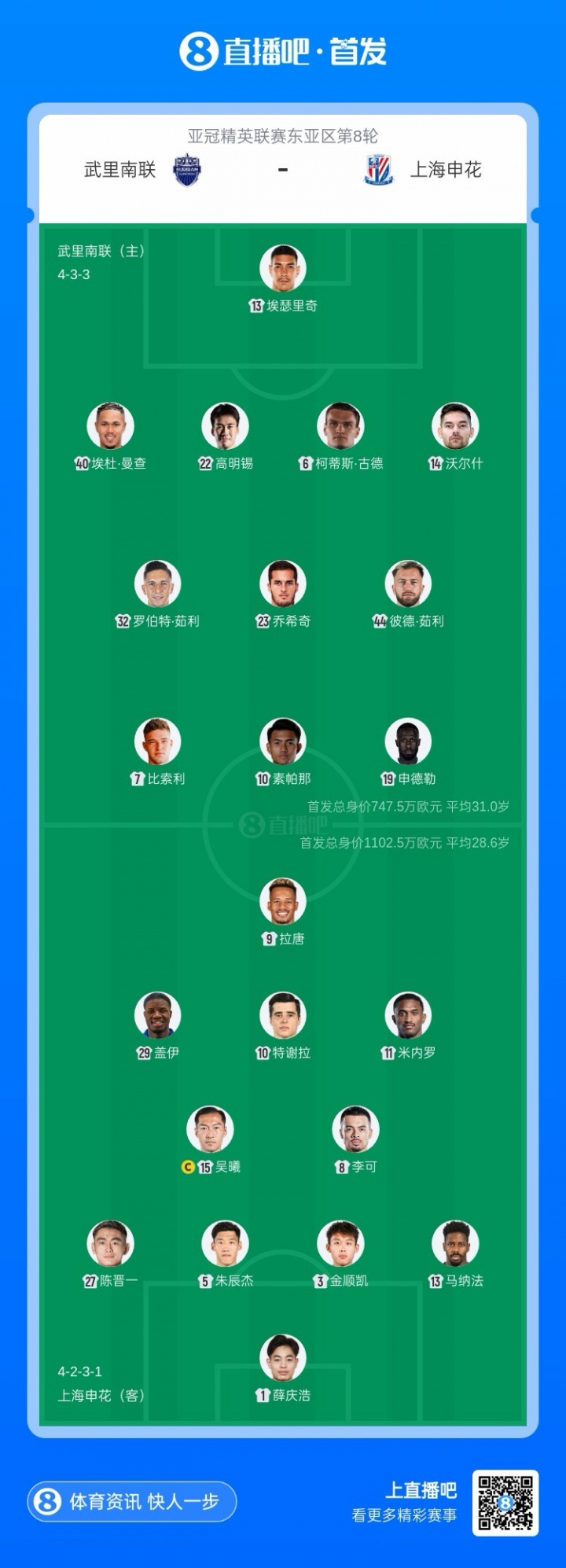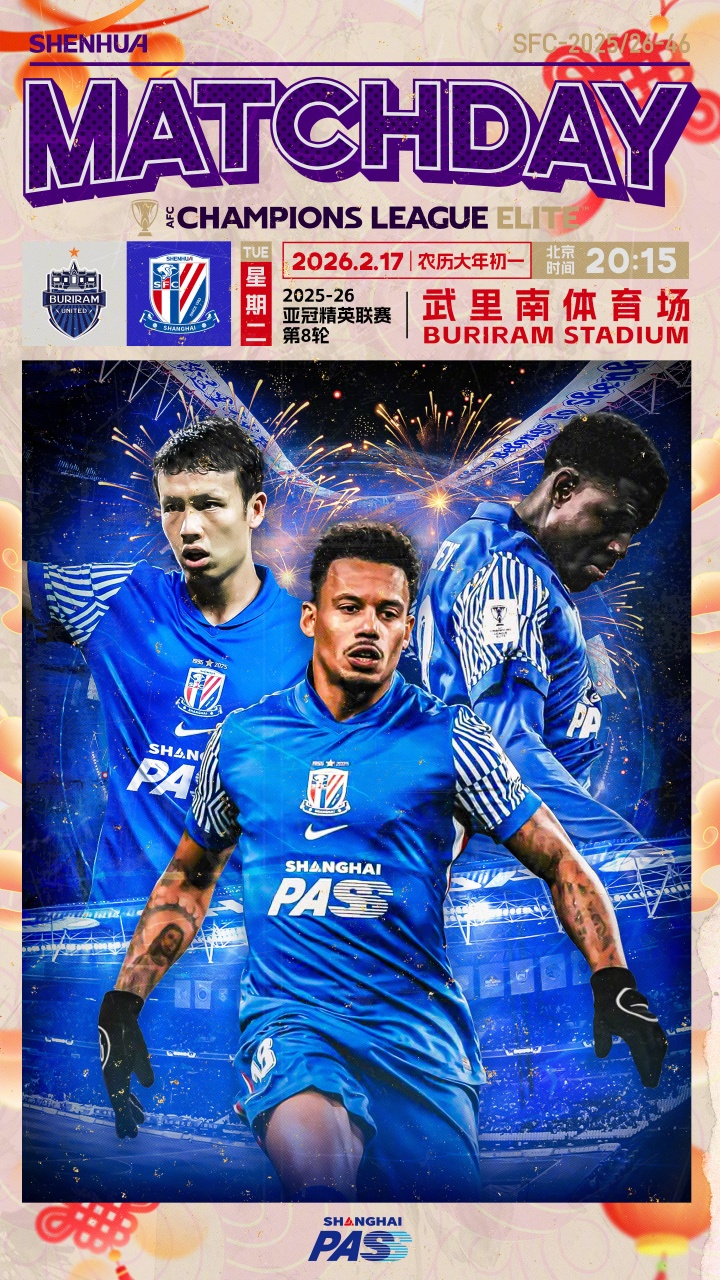 02月17日讯 北京时间20点15分,亚冠精英联赛东亚区第8轮,武里南联vs上海申花,赛前双方首发公布!