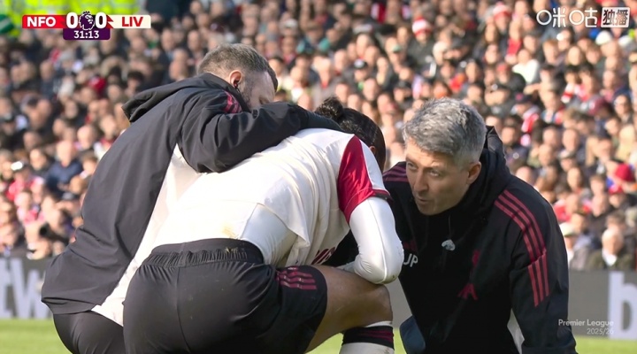 得缓缓!范戴克封堵射门被闷到后脑勺倒地,队医进场进行治疗