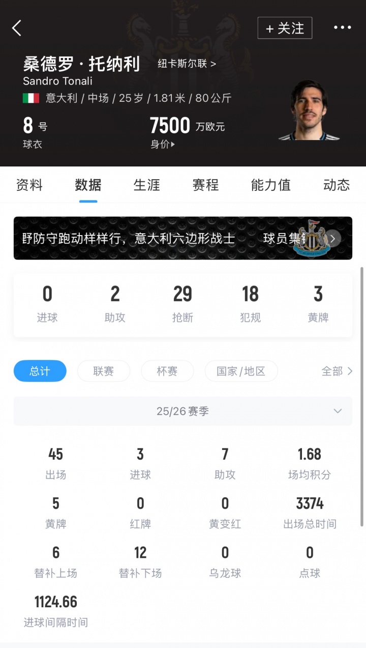 记者表示:“托纳利对纽卡而言是非常重要的球员,所以对他的估价也是顶尖球员级别,所以我们我们要谈论的是一个非常高的数字,达到9000万甚至1亿欧元,所以这个价格会让所有意大利球队望而却步,其中就包括尤文,因为尤文是目前对托纳利最感兴趣的球队之一。