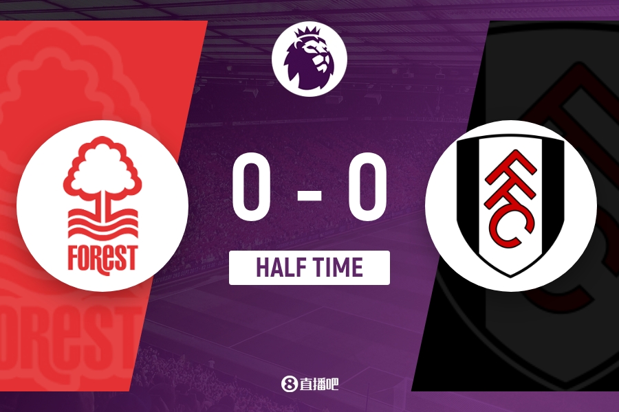 上半场比赛结束,诺丁汉森林0-0富勒姆。
