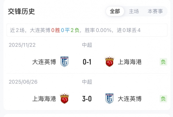 积分榜方面,大连英博本赛季前两轮全败,目前积0分排在第8位;上海海港则是1胜1负,目前负2分排在第11位。