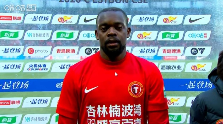 3月21日讯 本轮中超,辽宁铁人3-0天津津门虎。赛后铁人球员姆本扎接受采访。