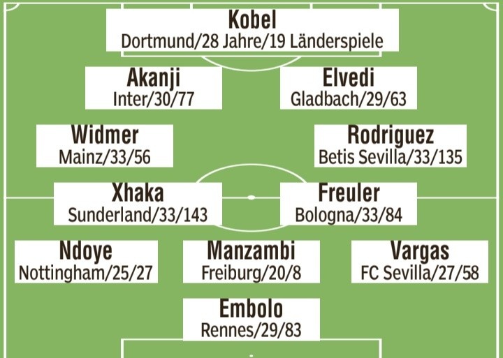瑞士队首发预测