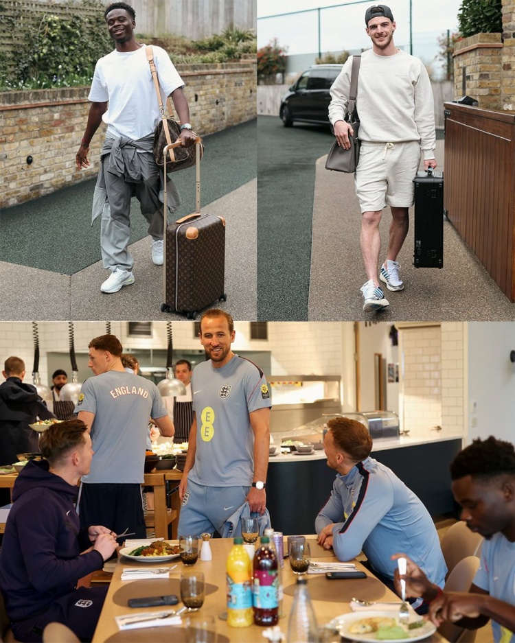 英格兰国家队官方宣布赖斯、萨卡以及凯恩等人来到国家队训练营报到。