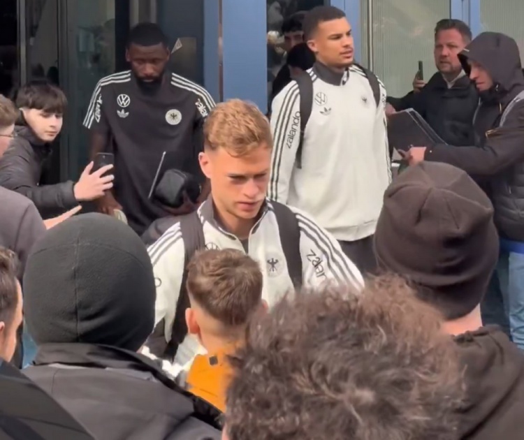 基米希在德国4-3加比瑞士的比赛中被肘击受伤,今天以基米希为首的球员们仍抽出大量时间为球迷签名合影,基米希在头部裂伤后上唇贴着一块厚创可贴。