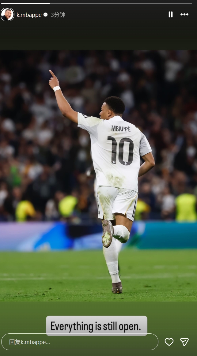 姆巴佩社媒更新快拍,配文道:一切皆有可能。