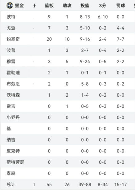 湖人还有机会?掘金除小波特和约基奇 其他人三分20中0仍赢球!